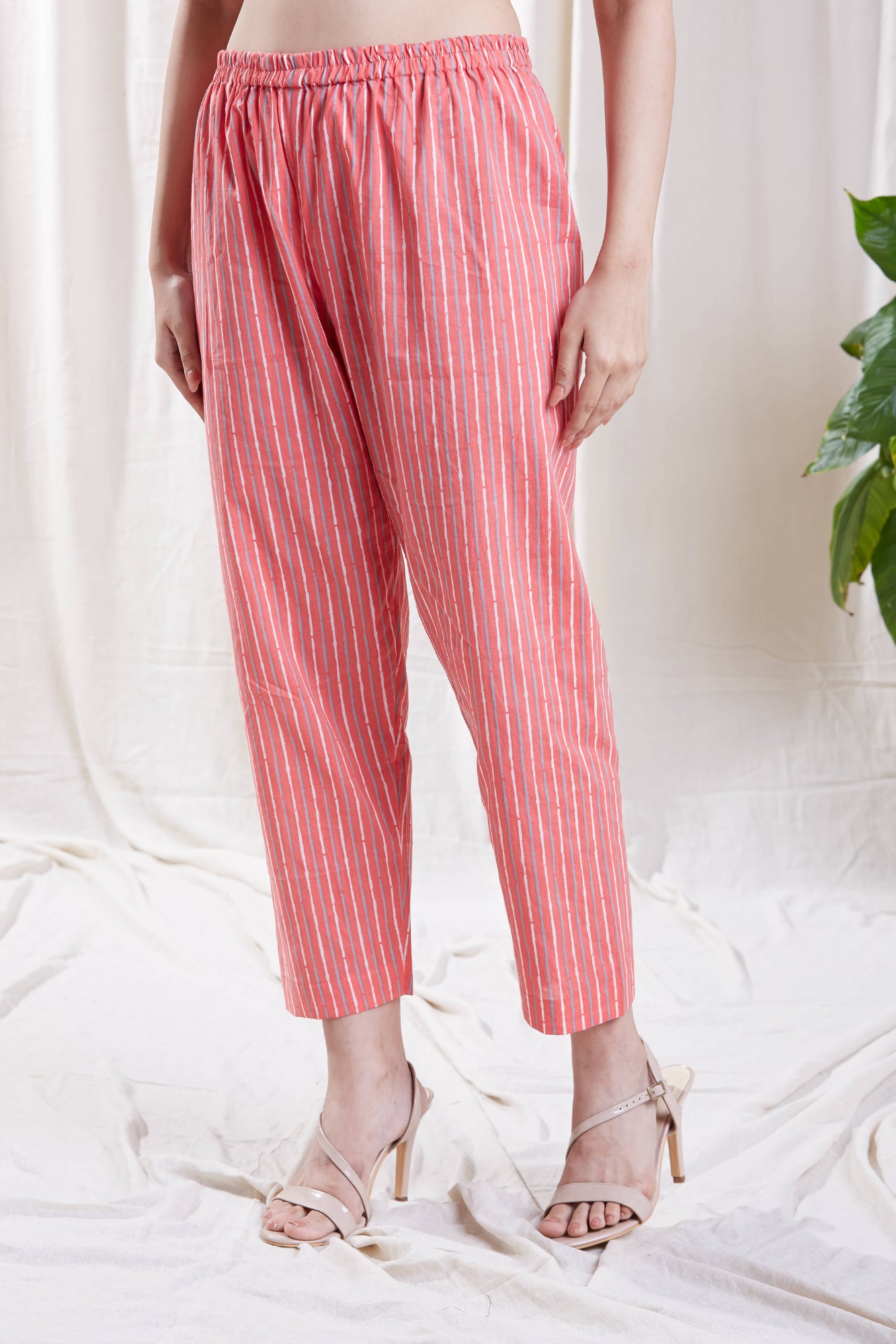 Completing the ensemble are the pink striped straight pants, designed for both comfort and style. Together, the kaftan and pants create a harmonious outfit that's perfect for celebrating in style.