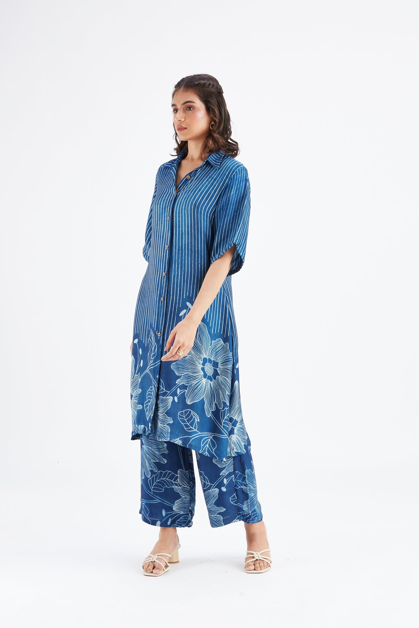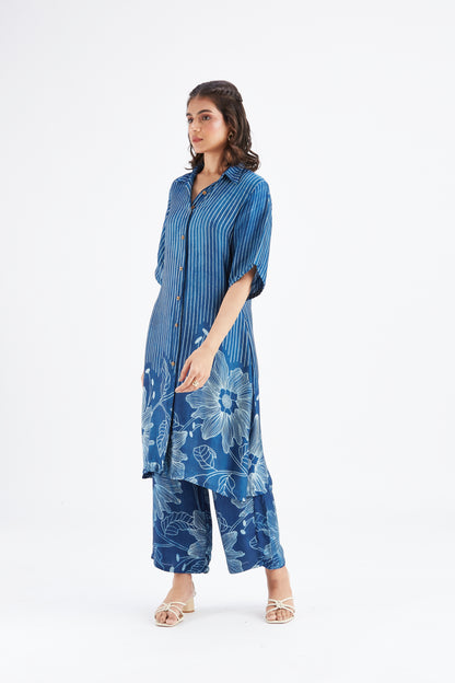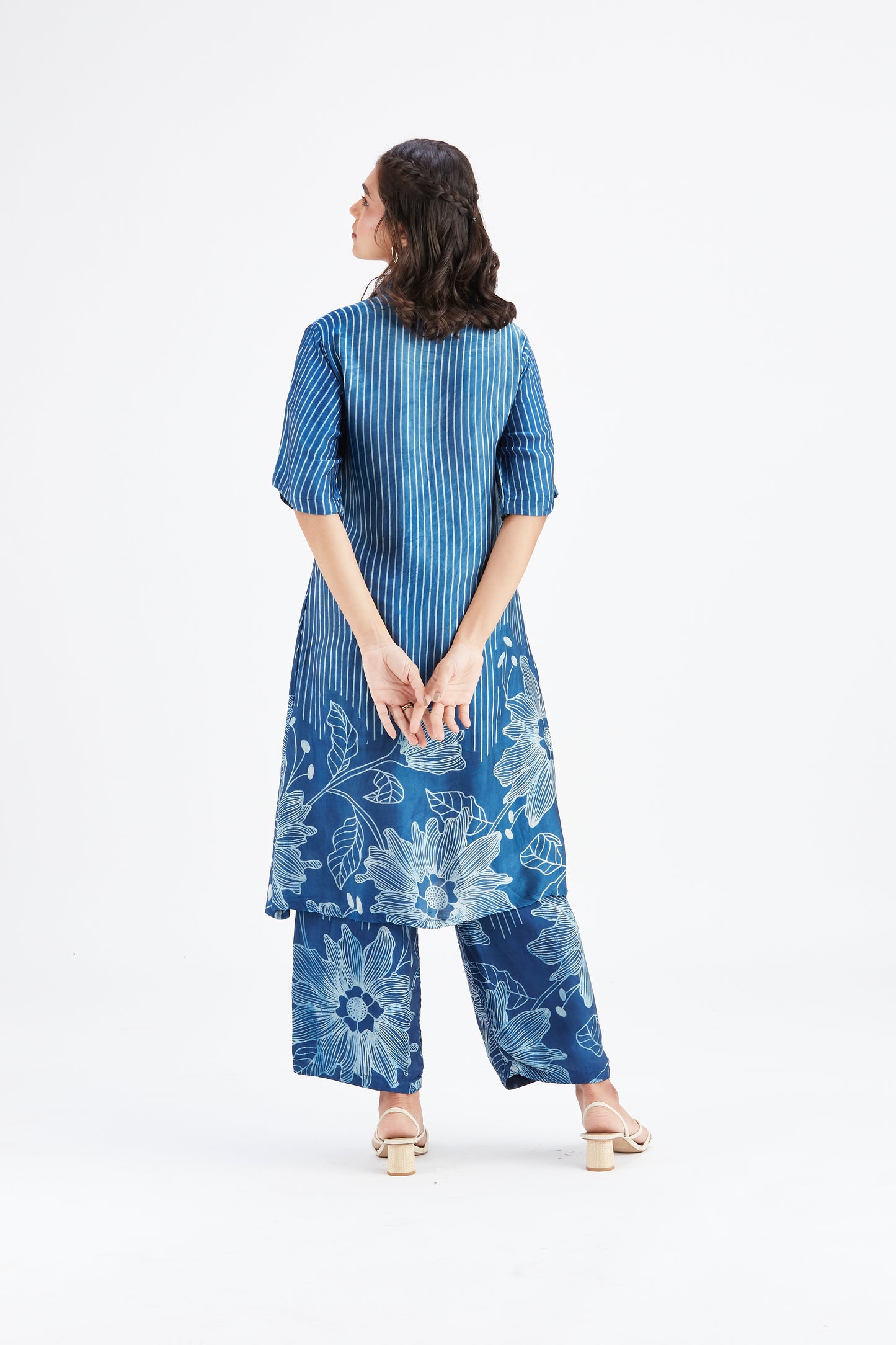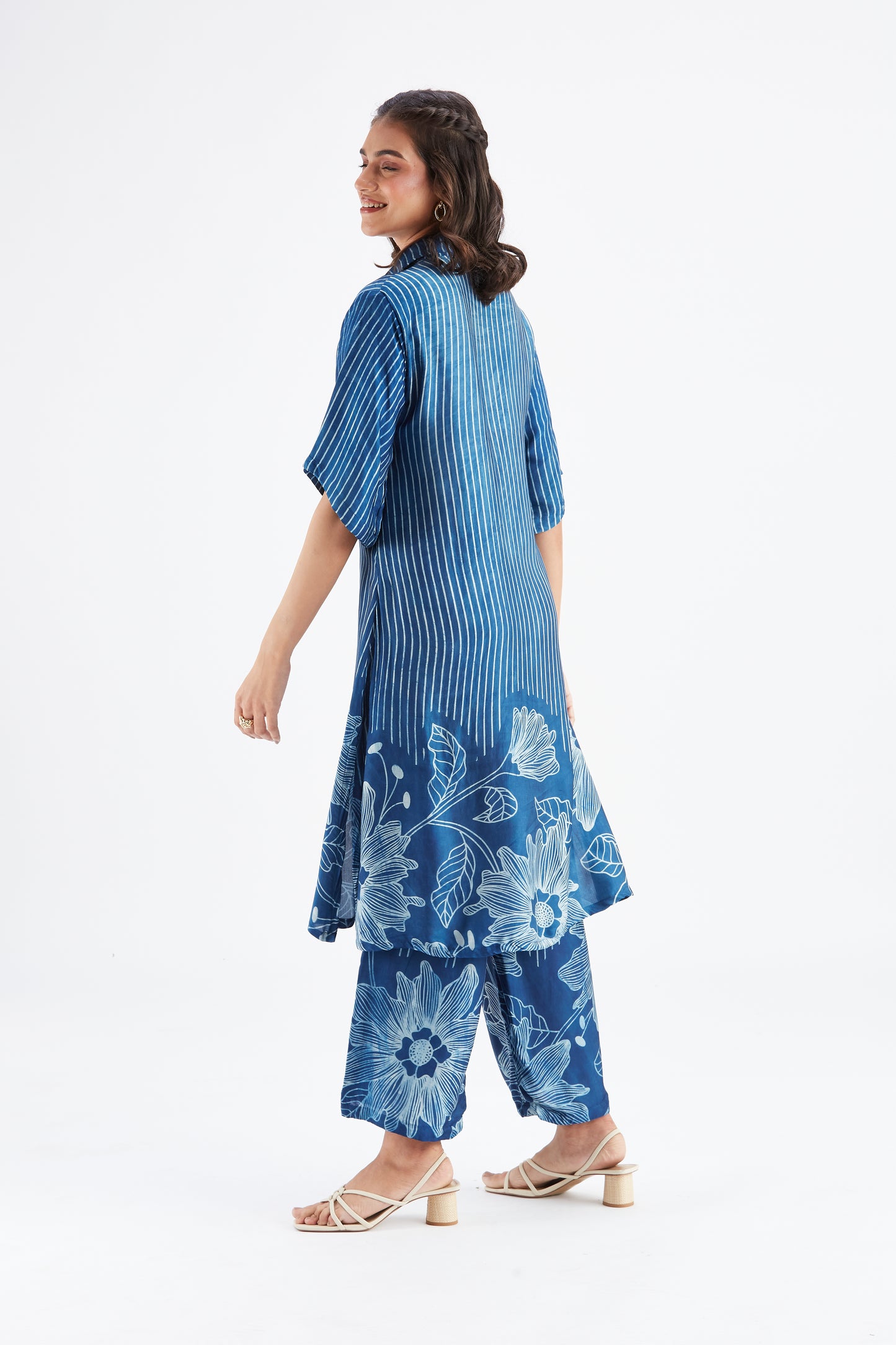 The Easha Indigo Kurta Set embodies effortless elegance with a touch of artistic flair. Crafted from soft, breathable indigo modal fabric, this knee-length kurta paired with coordinating pants offers a chic and breezy fit. Adorned with a subtle floral print, it brings a modern, feminine charm that feels as fresh as it looks.