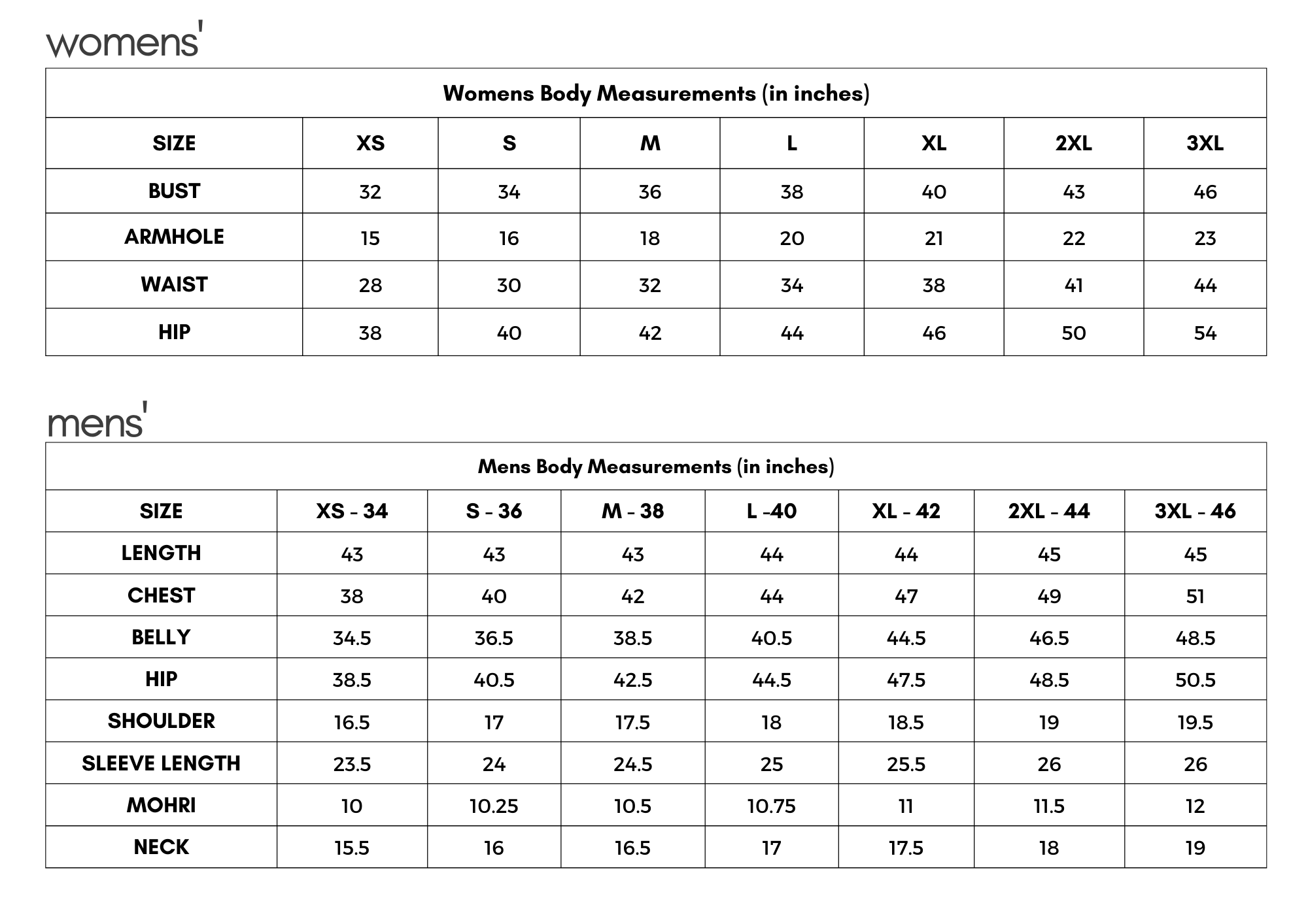 - Please note that the given measurements are body measurements, garments measurements vary from style to style.