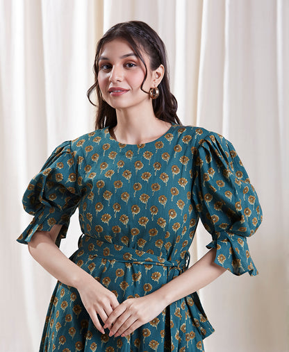 The Tia Co-ord Set features a unique design with puff sleeves that add a touch of drama and sophistication. The pleats at the hem of the sleeves create a delightful visual appeal, making it an ideal choice for those who appreciate distinct fashion.